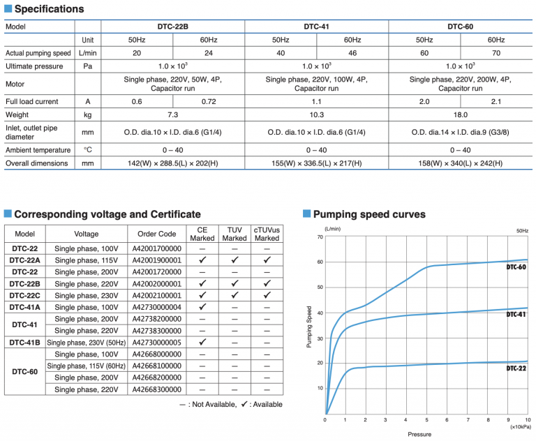 Diaphragm Type Dry Vacuum Pumps DTC Series come in a small, clean form-factor ideal for use in the laboratory environment. Affordably priced, the DTC is the perfect solution for your lab.