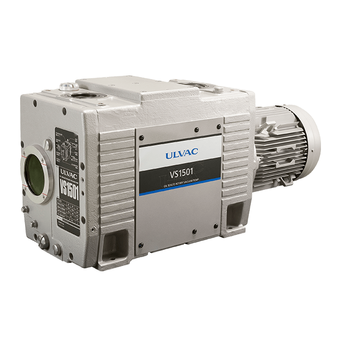 VS series is a single-stage oil rotary vacuum pump coupled with a direct-drive motor. ULVAC’s simplified design gives this lightweight pump the features of compact size along with low vibration operation. The substantial reduction in vibration of the VS series pump can help reduce the costs associated with having to perform special foundation work in facilities where vibration can be problematic. Additionally, enhancements in both the oil circulation and cooling systems result in increased stability of pumping performance at high inlet pressures. These VS series pumps are typically used in a wide range of applications, especially those having a large number of repetitive pumping steps that cycle from atmospheric pressure, such as in the automated leak testing of parts, as well as numerous other industrial applications.